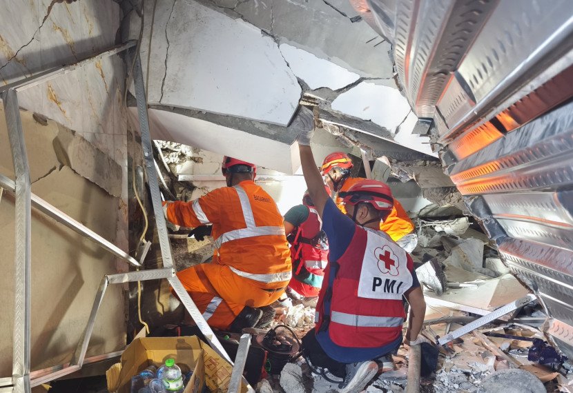 Tim SAR gabungan mencari korban di reruntuhan banhunan Ponpes Al-Khoziny Sidoarjo. FOTO: Basarnas Surabaya