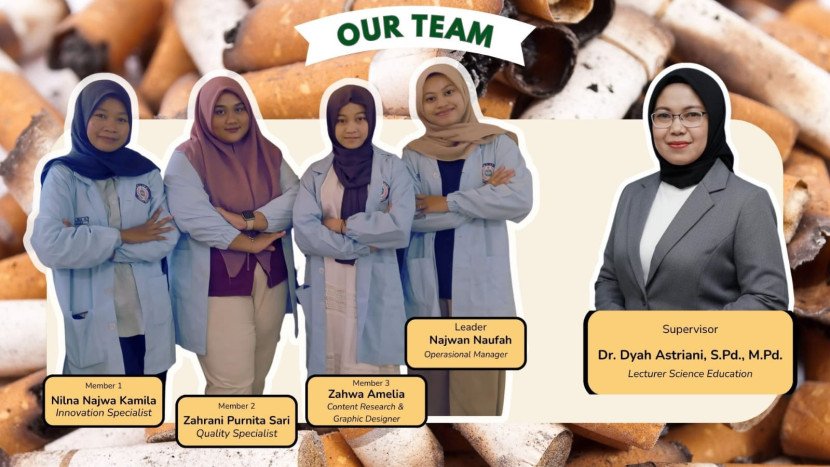 Tim yang menamakan diri mereka Filternovatic ini terdiri atas Najwan Naufah, Zahrani Purnita Sari, Nilna Najwa Kamila, dan Zahwa Amelia A., mahasiswa S1 Pendidikan IPA FMIPA Unesa. Riset mereka memanfaatkan selulosa asetat dari filter rokok yang dilarutkan dalam aseton dan dicampur dengan gliserol untuk menghasilkan bioplastik berdaya guna tinggi.