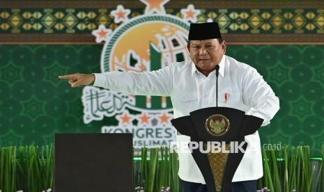 Presiden Prabowo Subianto menyampaikan pengarahan dalam Pembukaan Kongres XVIII Muslimat NU di Surabaya, Jawa Timur, Senin (10/2/2025). Kongres yang mengangkat tema Merawat Tradisi, Menguatkan Kemandirian, dan meneduhkan Peradaban tersebut berlangsung hingga 15 Februari 2025. (FOTO : ANTARA FOTO)