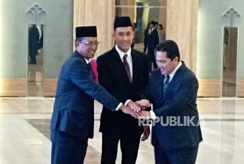 Miliano Jonathans (tengah) diapit oleh Menteri Hukum RI Supratman Andi Agtas dan Ketua Umum PSSI Erick Thohir.