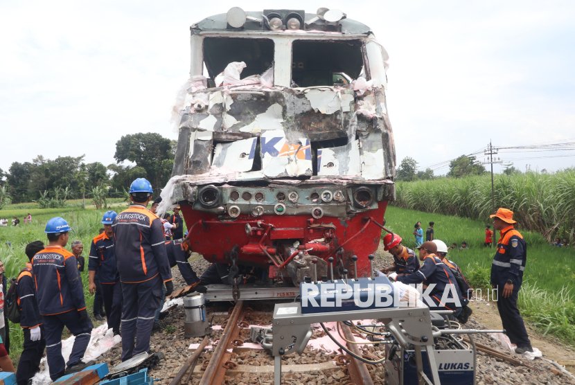 Sejumlah petugas mengevakuasi Kereta Api Kertanegara yang mengalami kecelakaan di Ngadiluwih, Kabupaten Kediri, Jawa Timur, Senin (10/3/2025). (Ilustrasi)